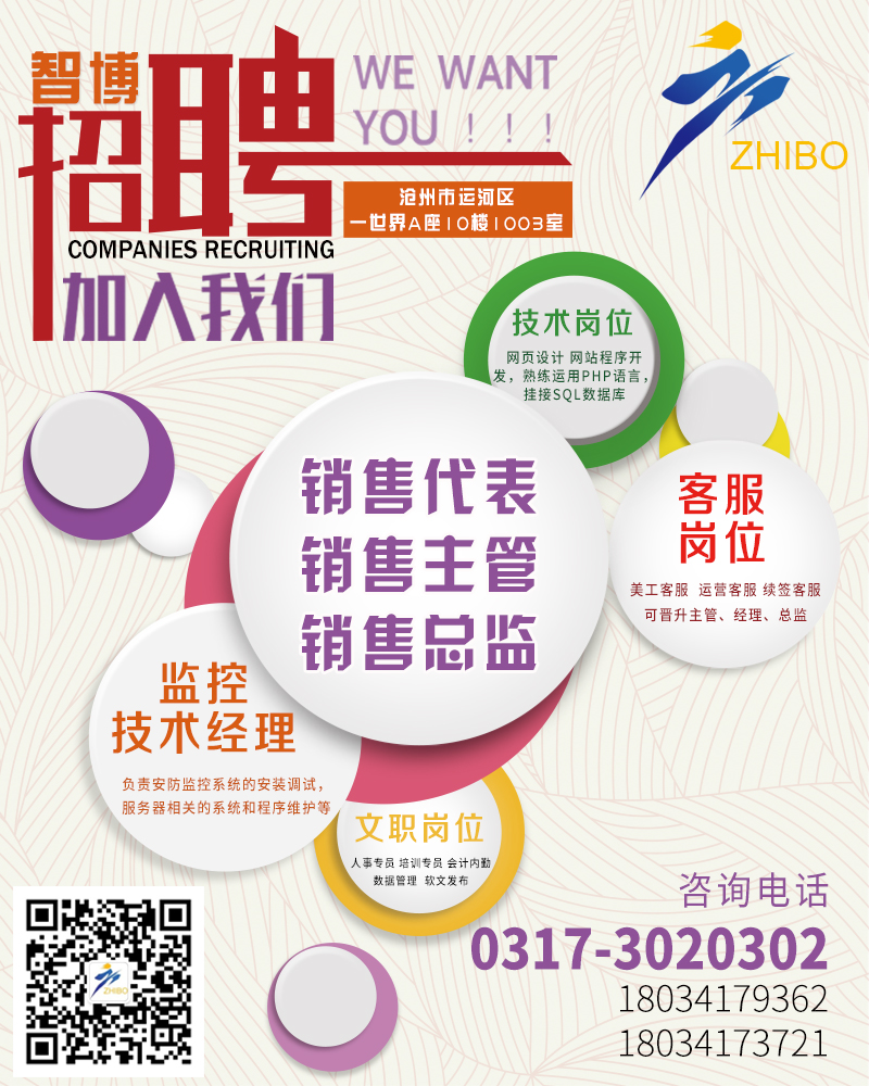 滄州智博要搬新家啦?。?!新辦公區(qū)位于滄州西部的京貴中心寫字樓溫馨的辦公環(huán)境完善的培訓(xùn)體系完備的晉升通道細(xì)致的人文關(guān)懷讓你在快樂的氛圍里收獲成長與成就。還在等什么,快來加入我們吧!!誠聘以下優(yōu)秀人才&n